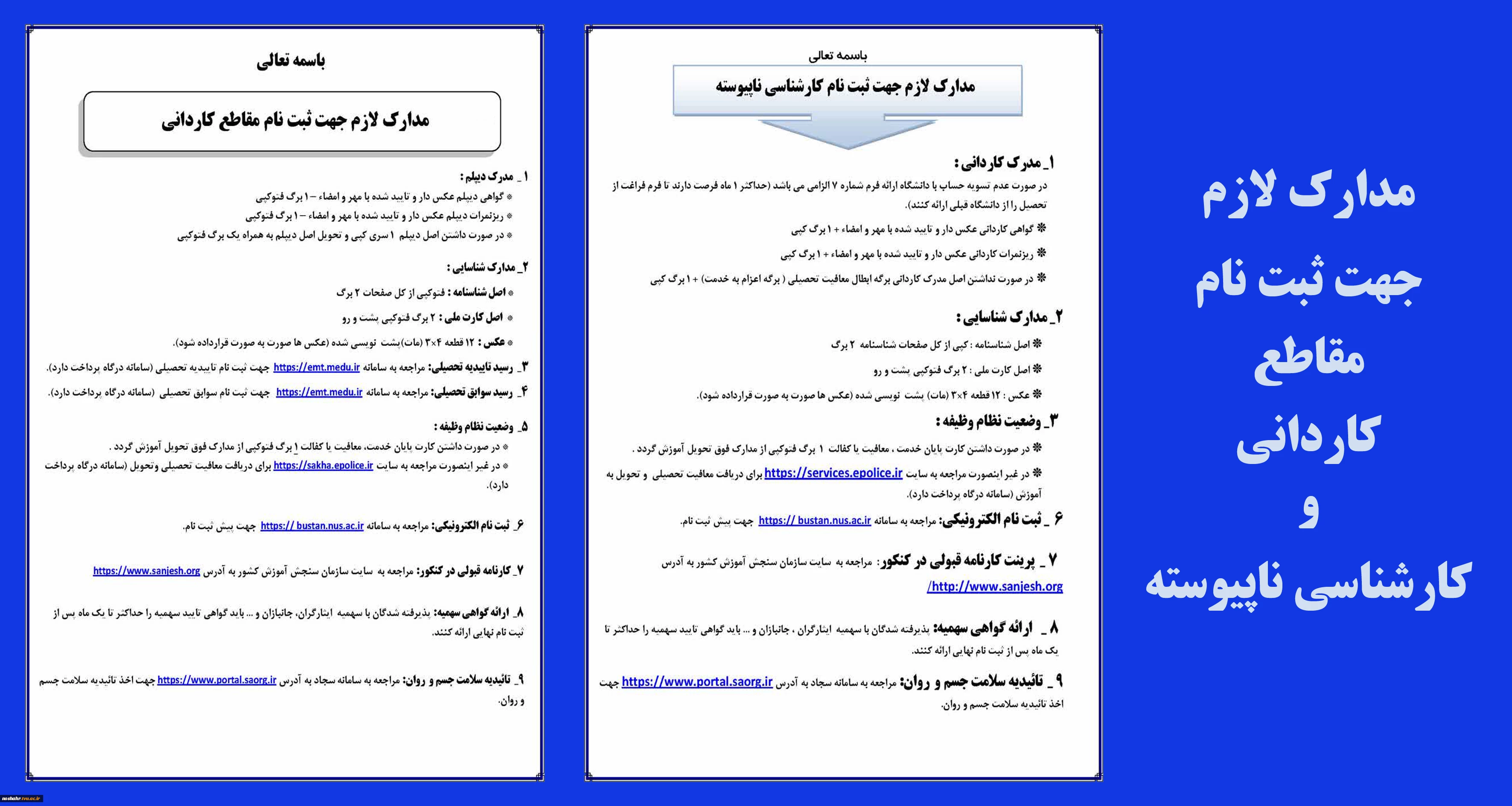 فرم های ثبت نام دانشجویان نو ورود ( کاردانی و کارشناسی)